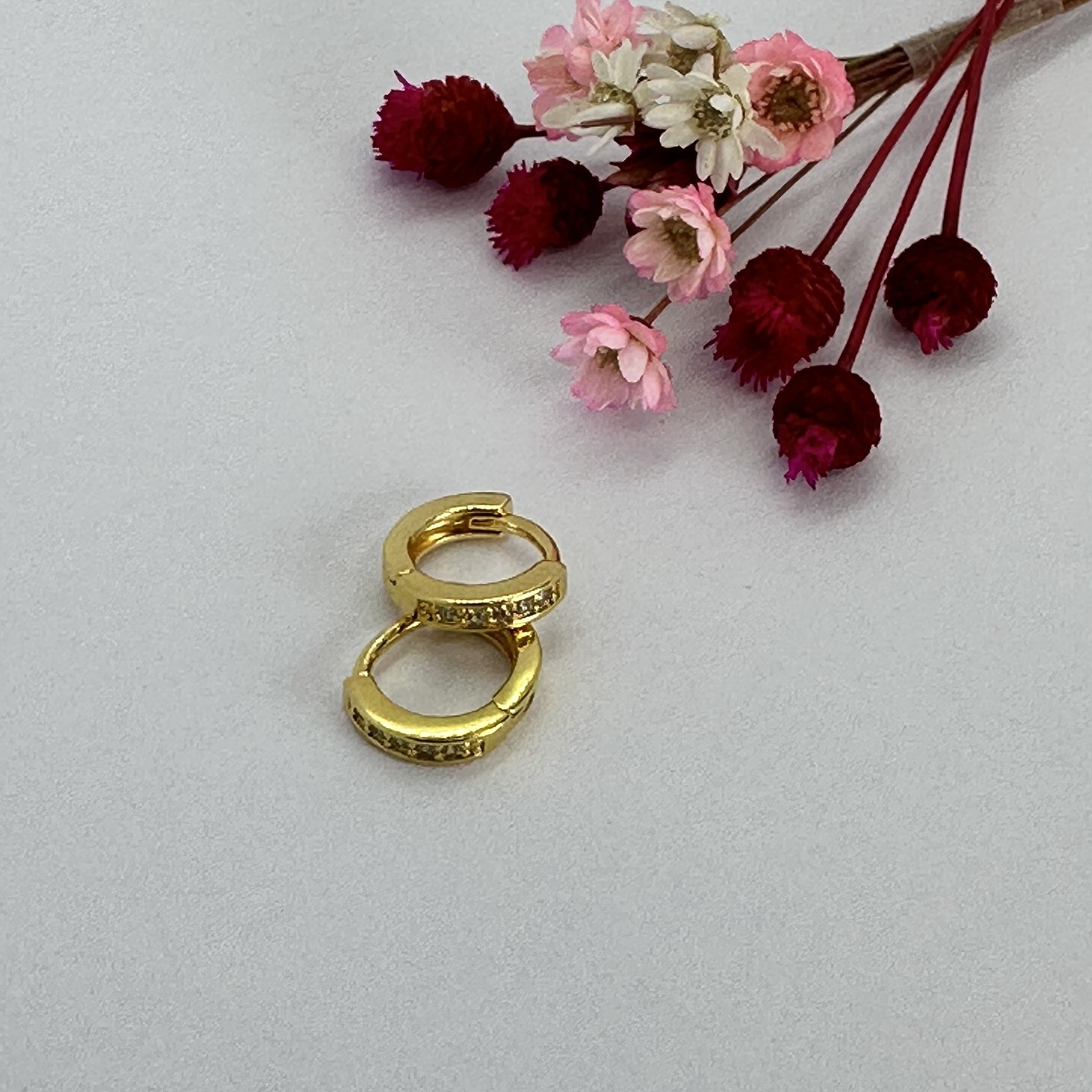 Brinco Semijóia Hipoalergênico Argolinha com Microzirconias Happy Lyfe Pequena no Dourado
