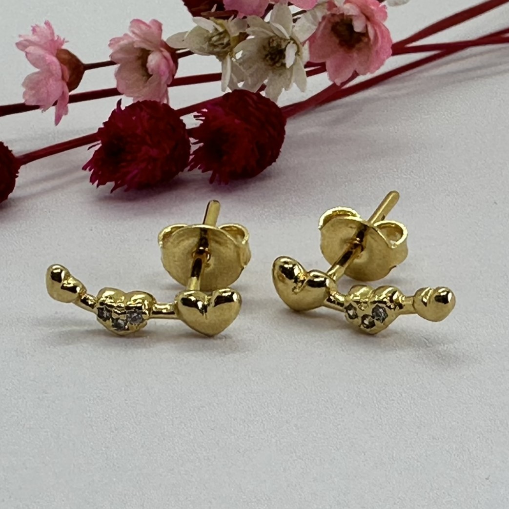 Brinco Semijóia Hipoalergênico Ear Cuff Coracoes de Microzirconia Happy Lyfe Pq. No Dourado com Cristal